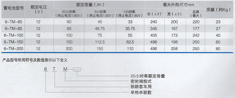 ●6-TM系列蓄電池型號(hào)、基本參數(shù)及外形尺寸