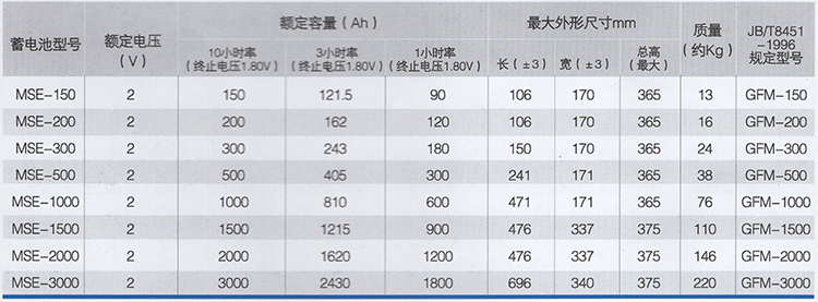 ●MSE系列蓄電池型號(hào)、基本參數(shù)及外形尺寸